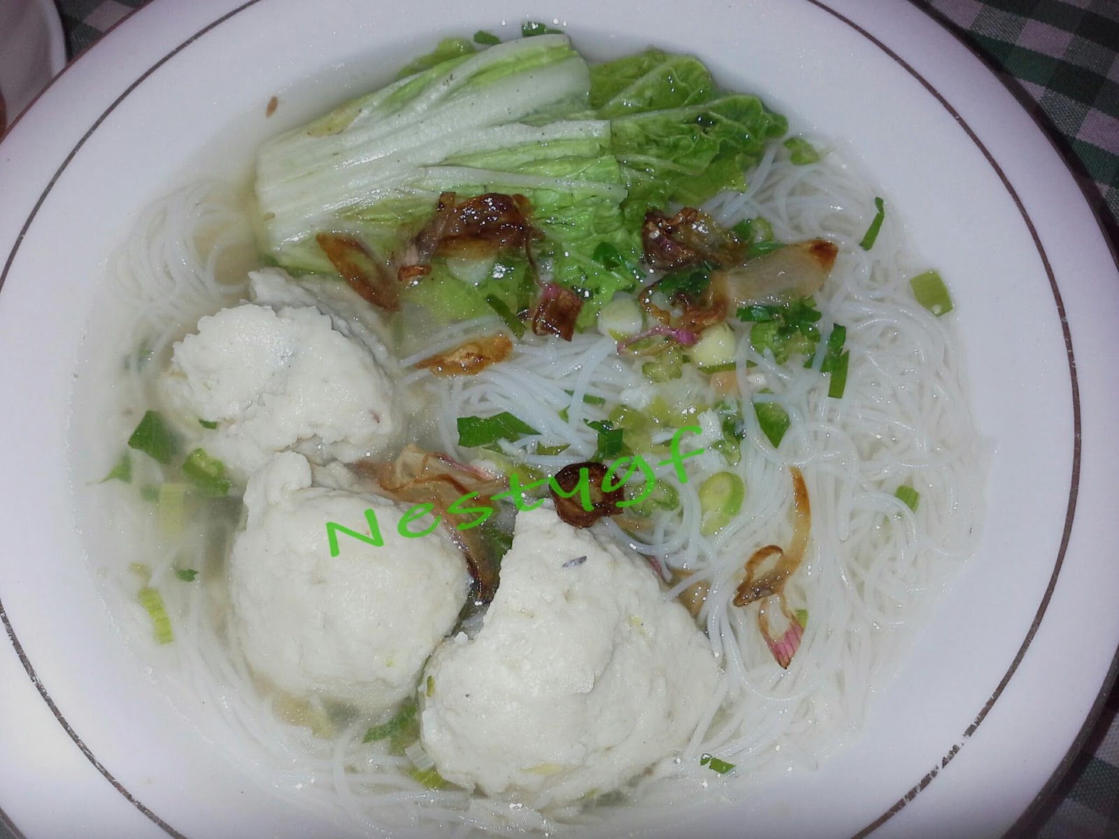 5. Bihun yang sudah direbus sebentar dan ditiriskan atau mi telur
